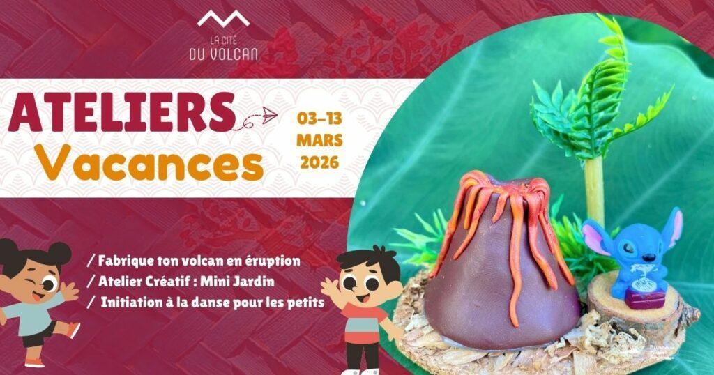PARTICIPEZ AUX ATELIERS VACANCES DE MARS 2026 À LA CITE DU VOLCAN ! INFOS PRATIQUES Dates : 03,10,11 et 13 mars 2026 Tarif : 12€ par enfant (matériels et jus inclus). Réservation…