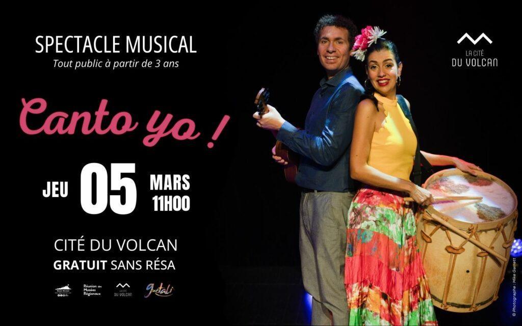 Découvrez « Canto yo ! » un spectacle musical de la Cie OperAzul, le Jeudi 05 Mars à 11h00 à la Cité du Volcan. Chansons et comptines latino-américaines Catalina…