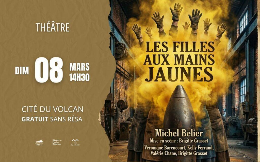 Découvrez « Les filles aux mains jaunes » une pièce de théâtre de la Cie Culture Péi d’après l’oeuvre de Michel Belier, le dimanche 08 Mars à 14h30 à la Cité…
