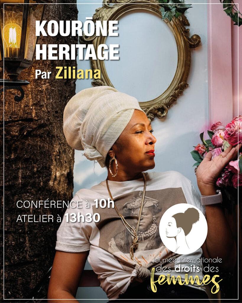 Ziliana Hibon, de Kourone Héritage, propose une plongée sensible dans notre mémoire collective. A travers les gestes transmis par nos mères, nos grands-mères et nos tantes, elle raconte des histoires de coiffe : comment nouer un foulard comme on tisse une histoire, comment coiffer les cheveux afro comme on façonne une identité au cœur des mémoires coloniales. Chaque tresse, chaque torsade, chaque couronne de coton ou de soie portait en elle un message, un héritage discret mais puissant. A travers cette conférence, Ziliana Hibon invite le public à redécouvrir ces gestes du quotidien comme des actes de transmission, de résistance et de construction identitaire.