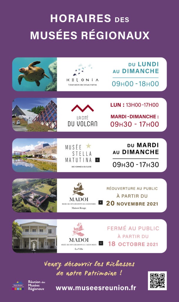 Que vous soyez jeunes ou plus âgés, férus d’Histoire ou de Science, passionnés par le volcanisme ou la vie marine, amateurs d’arts décoratifs, les musées de RMR (Réunion des Musées Régionaux) vous offrent la possibilité de découvrir le patrimoine historique, marin, scientifique et culturel de l’Ile de La Réunion.